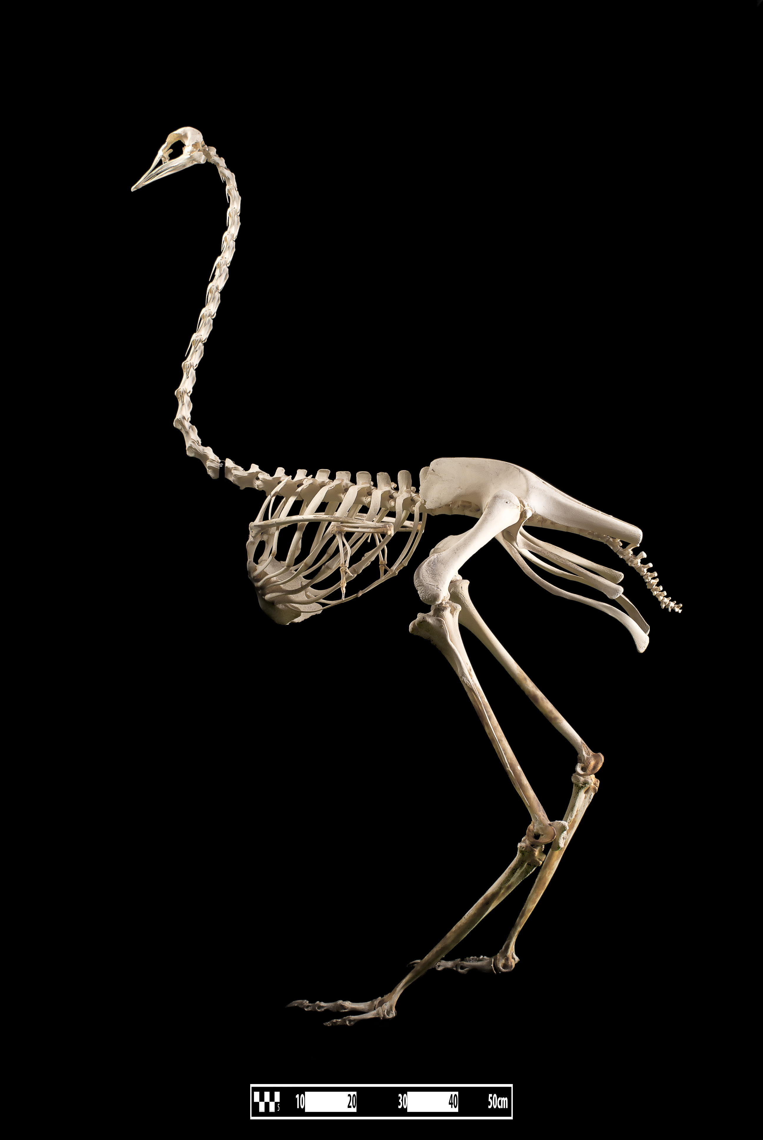 Struthio camelus (ostrich) skeleton prepared using the bone maceration technique and on display at the Museum of Veterinary Anatomy FMVZ USP.. Learn more.